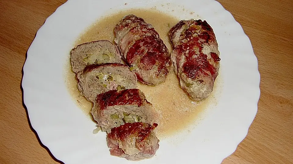 Öl in einer Pfanne erhitzen. Rouladen darin rundum ca. 10 Minuten braten. Herausnehmen.