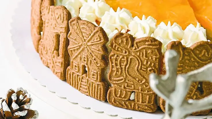 vor dem servieren den springformring vorsichtig von dem tortenrand lösen und die überstehenden spekulatius-kekse, die jetzt weich sein müssten, zur tortenmitte hin klappen. Letztendlich die torte nach belieben mit zimt bestäuben.