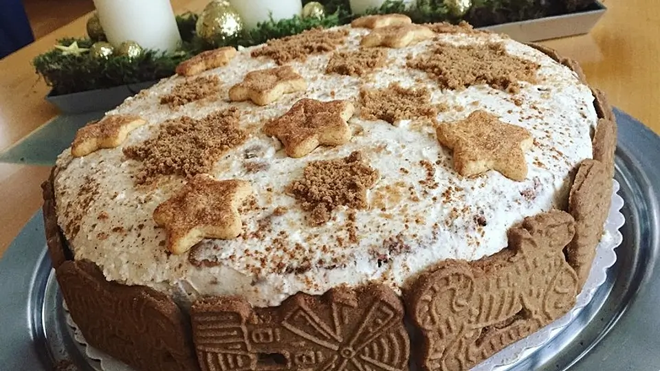 vor dem servieren den springformring vorsichtig von dem tortenrand lösen und die überstehenden spekulatius-kekse, die jetzt weich sein müssten, zur tortenmitte hin klappen. Letztendlich die torte nach belieben mit zimt bestäuben.