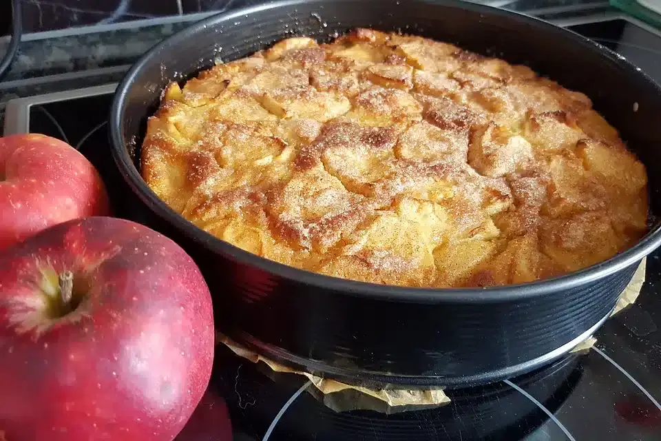Lecker, super saftig und passt super zu Schlagsahne. Es scheint zwar, dass es zu viele Äpfel sind im Verhältnis zum Teig, aber keine Angst. Der Teig sucht sich seinen Weg durch die Äpfel und dient eigentlich nur als zusammenhaltende Form für die Äpfel.