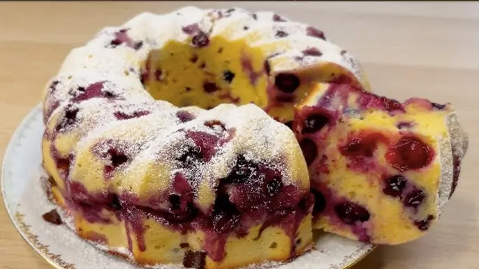 Butter, Zucker, Vanillinzucker und Salz schaumig rühren. Eier dazugeben und gut mit der Buttermasse verrühren. Zitronenabrieb, Saft und Öl hinzufügen und anschließend Mehl und Backpulver mischen und abwechselnd mit der Buttermilch nach und nach einrühren. Zum Schluss die Früchte etwas mehlieren und unter den Teig heben.