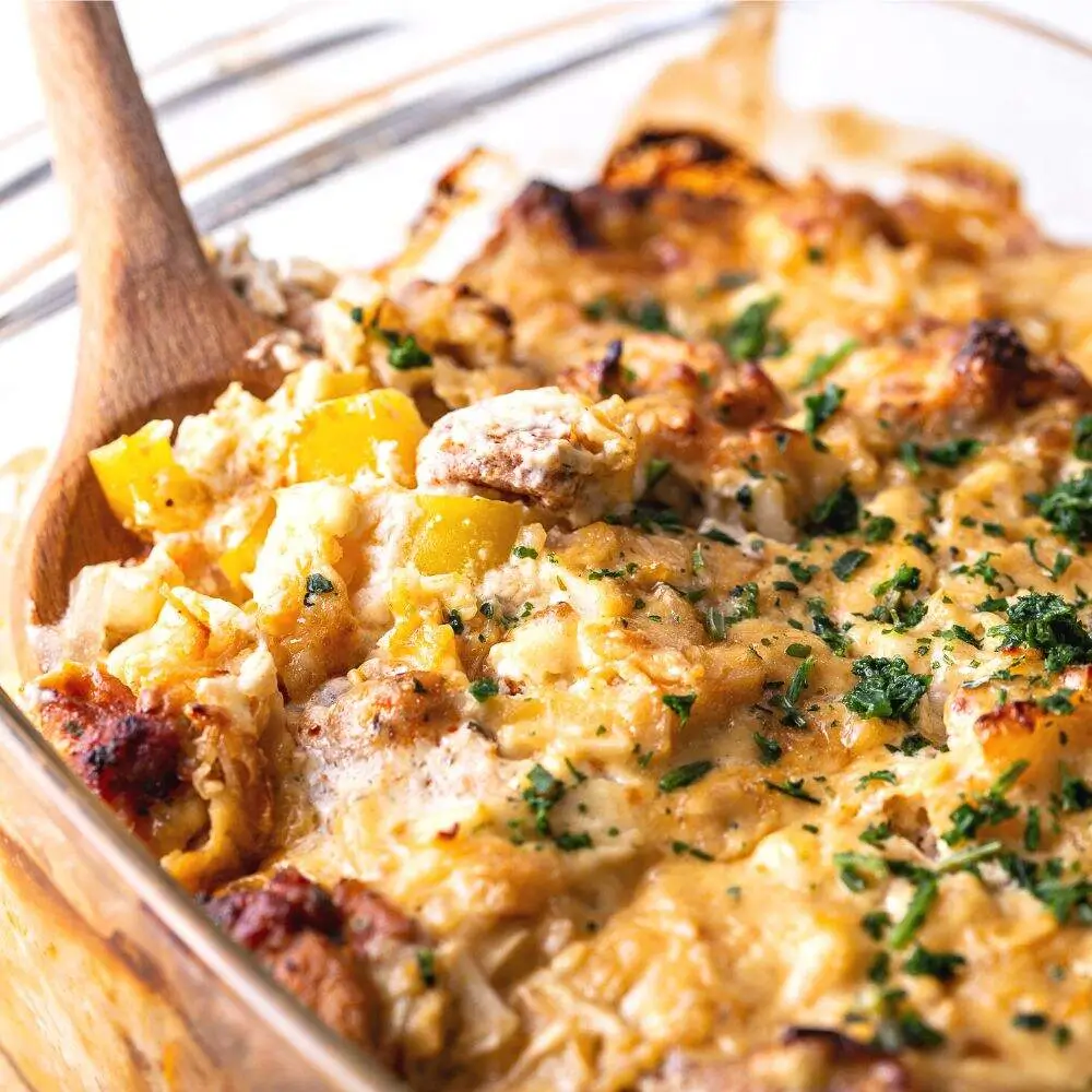 4. Jetzt nur noch bei 210 Grad ca. 30 Minuten abgedeckt garen, dann noch ca. 15 Minuten offen überbacken. Fertig !