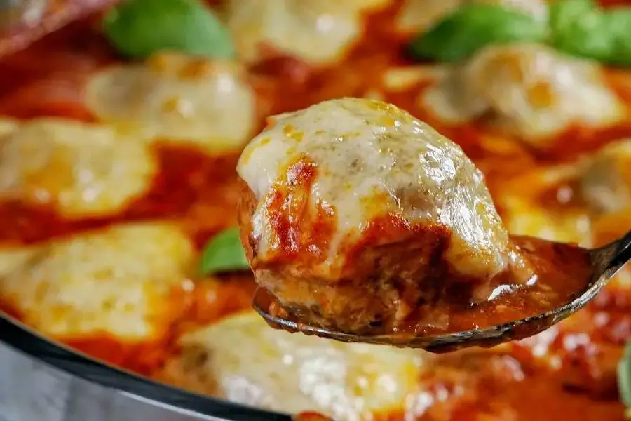 Tomatenmark, Sahne, Sauerrahm und Gewürze zu einer Soße zusammenrühren und über die Hackfleischbällchen geben. Die Goudascheiben vierteln und auf die Hackbällchen legen, dann in den Ofen schieben. Nach 20 – 25 Minuten ist das Gericht fertig.