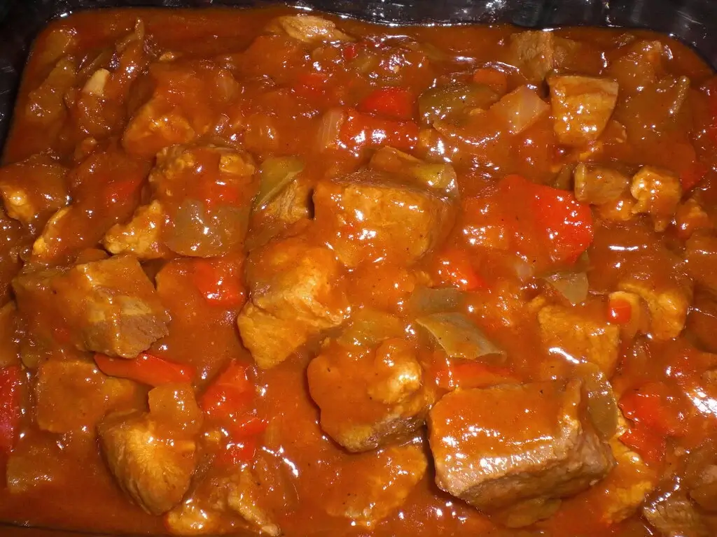 Mit Brühe oder Wasser angießen und zugedeckt schmoren lassen. Mit Mehl andicken (ist kein Muss). Dann Sahne unterrühren. Damit sie nicht flockt, vermengt man sie mit ein paar Löffeln vom heißen Bratensaft, bevor sie portionsweise zum Fleisch gegeben wird. Umrühren und abschmecken.