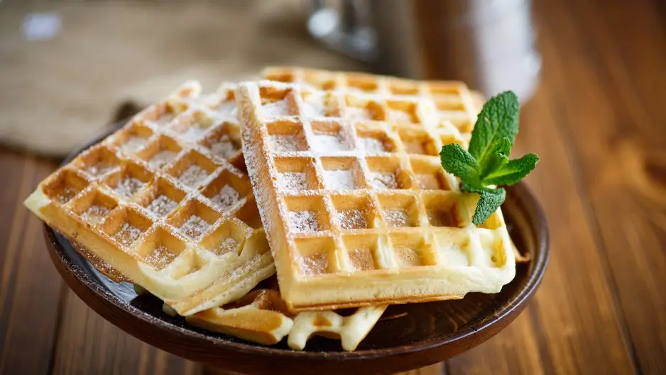Das Waffeleisen vorheizen und am besten für die erste Waffel auch etwas einfetten, dann alle Waffeln ausbacken. Puderzucker darüber streuen und fertig.
