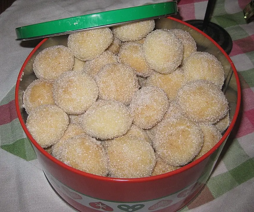 Aus den ersten 6 Zutaten einen Mürbeteig herstellen. Kleine Kugeln formen und auf ein vorbereitetes Backblech geben.