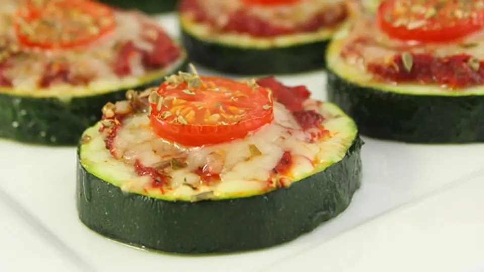 Tomaten waschen und in Scheiben schneiden. Jeweils eine Scheibe auf jede Zucchini mit Knoblauchmayonnaise geben.
