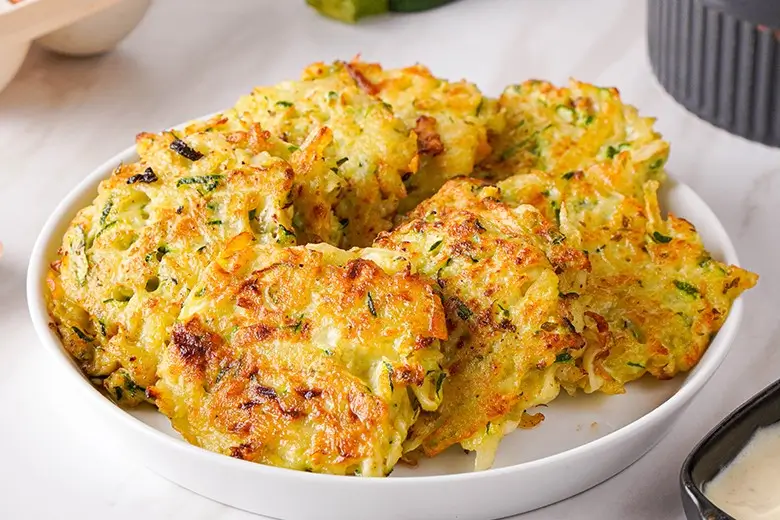Aus Mehl, Eiern und Milch einen Pfannkuchenteig zubereiten. Zucchini grob raspeln, Zwiebel in Würfelchen schneiden und beides unter den Teig mischen. Mit Salz, Pfeffer und Thymian würzig abschmecken.