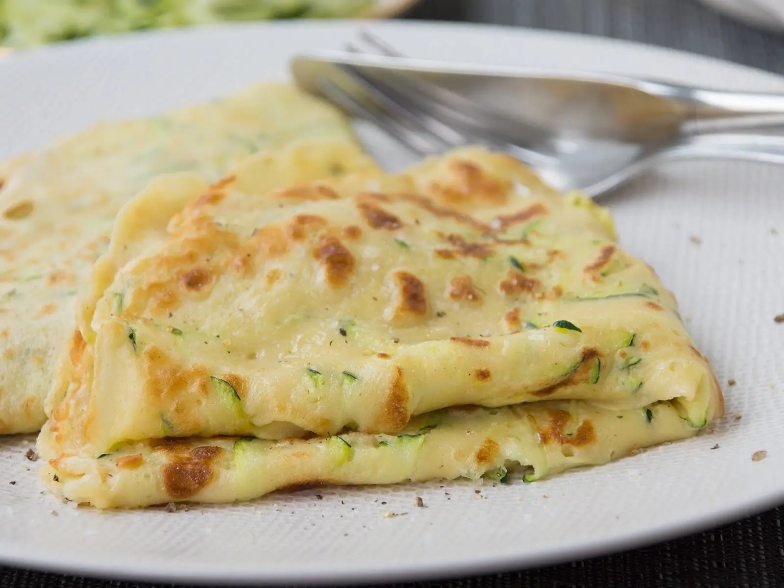 Aus Mehl, Eiern und Milch einen Pfannkuchenteig zubereiten. Zucchini grob raspeln, Zwiebel in Würfelchen schneiden und beides unter den Teig mischen. Mit Salz, Pfeffer und Thymian würzig abschmecken.