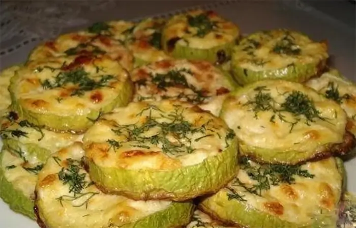 ZUCCHINISCHEIBEN MIT KNOBLAUCH UND SAURER SAHNE ÜBERBACKEN